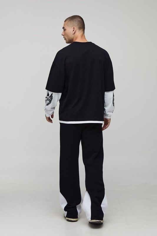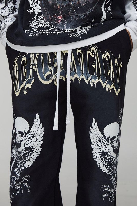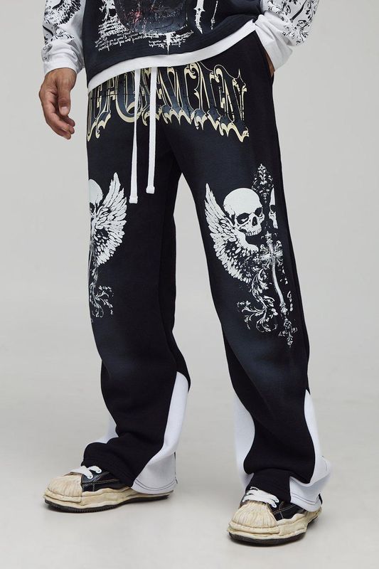 Relaxed Fit Flare Spray Washed Skull Gusset Jogger