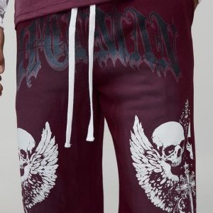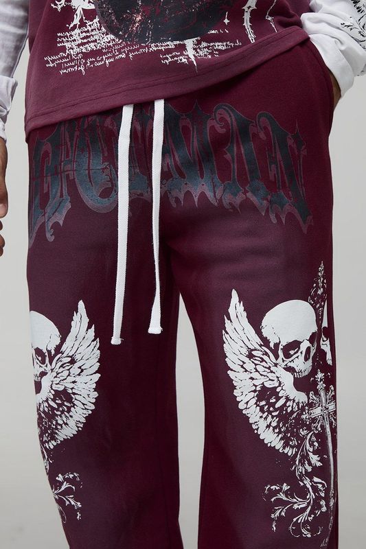 Relaxed Fit Flare Spray Washed Skull Gusset Jogger