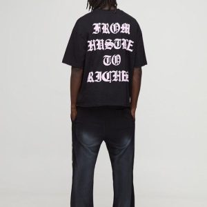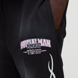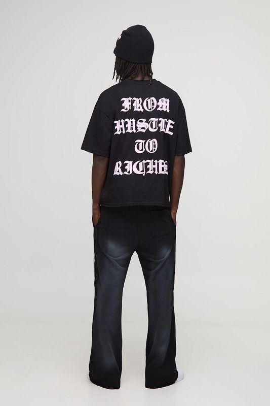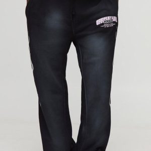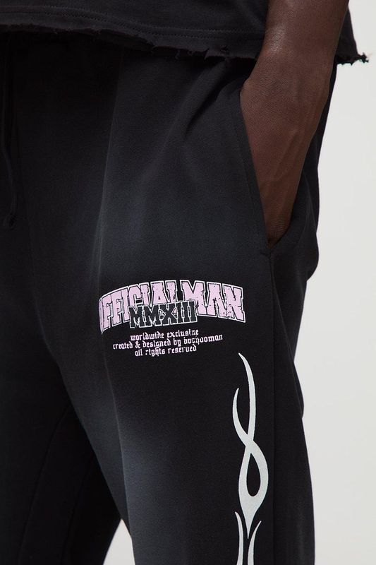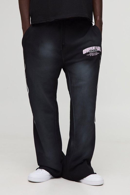 Relaxed Fit Flared Glitter Print Spray Wash Graphic Gusset Joggers