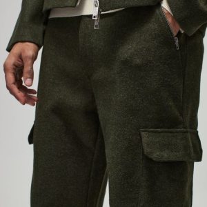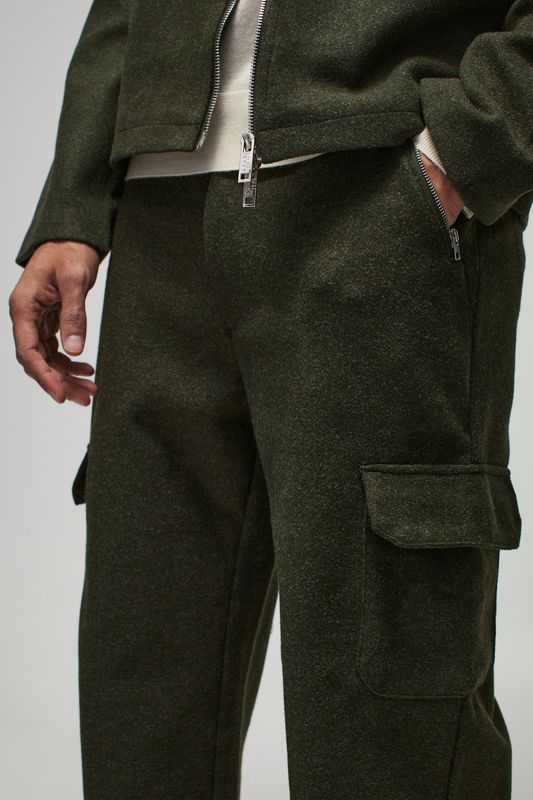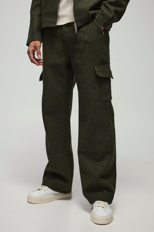 Relaxed Fit Wool Look Fixed Waistband Pants