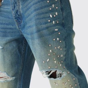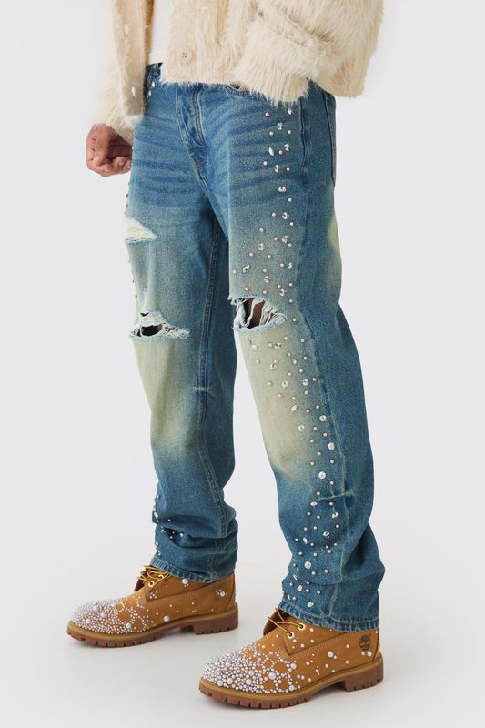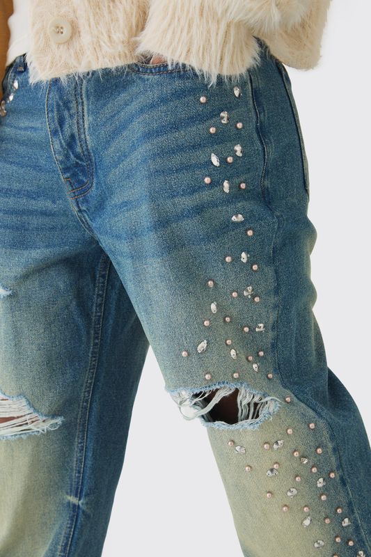 Relaxed Rigid Flared Embellished Ripped Jeans