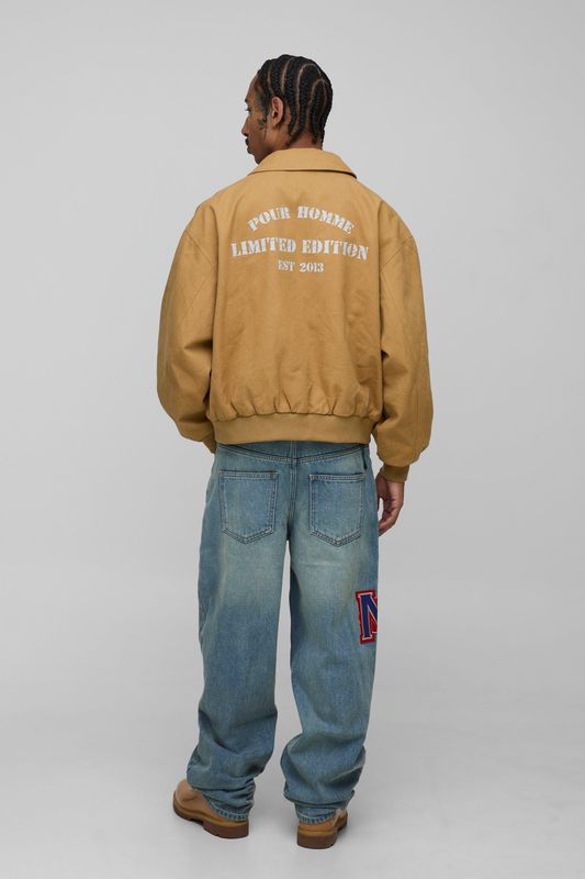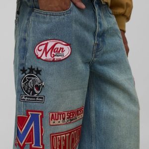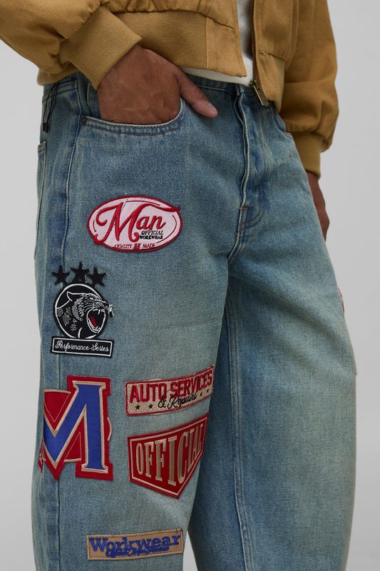 Relaxed Varsity Badge Washed Denim Jeans