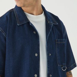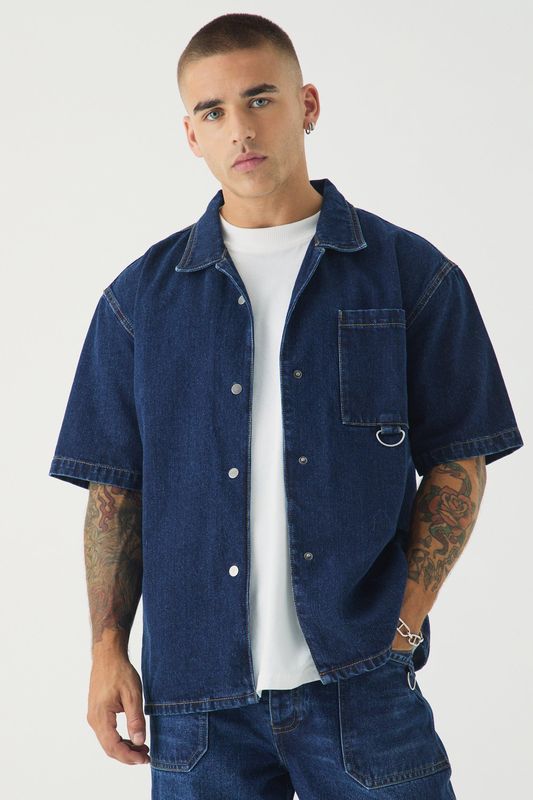 Short Sleeve Oversized Boxy Revere Denim Shirt