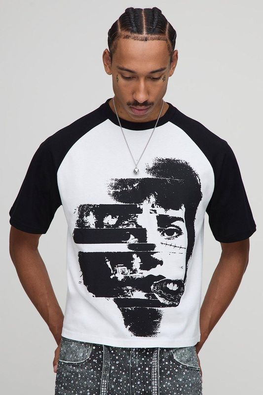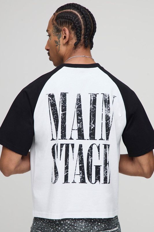 Shrunken Boxy Short Sleeve Raglan Graphic T-Shirt