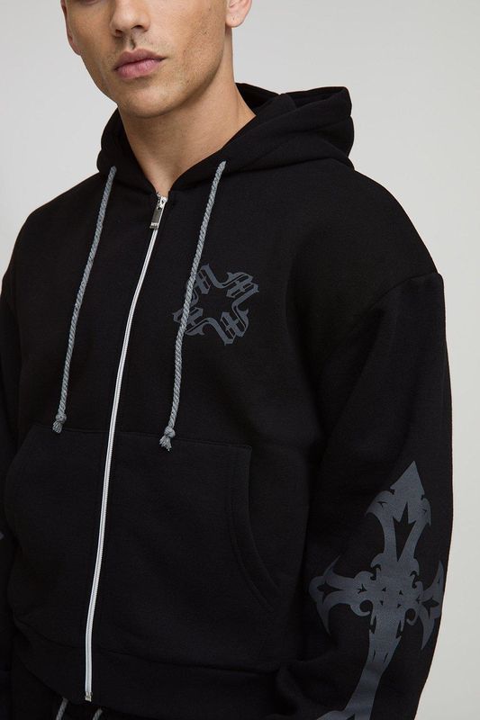 Oversized Boxy Moto Zip Through Hoodie And Relaxed Jogger Tracksuit
