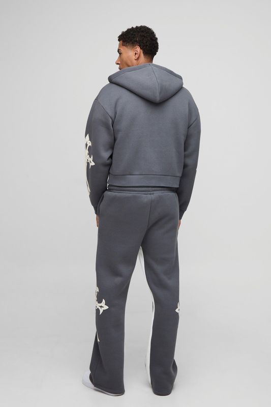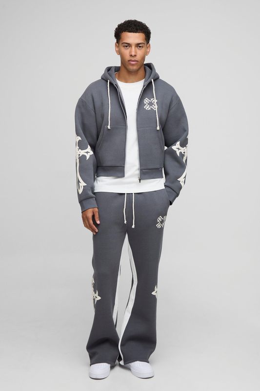 Shrunken Cross Hooded Zip Flare Gusset Tracksuit