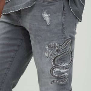 Skinny Fit Snake Embroidery Chain Jeans