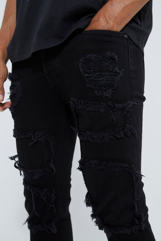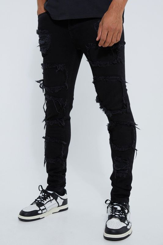 Skinny Stacked Distressed Ripped Jeans