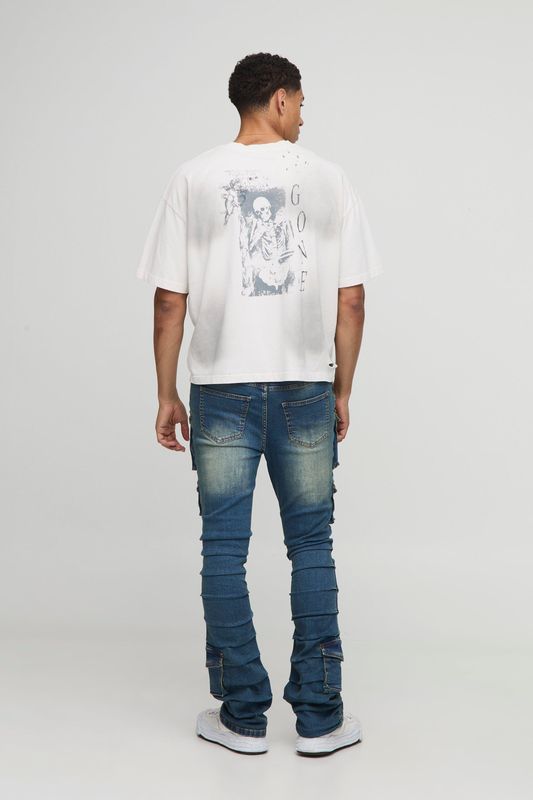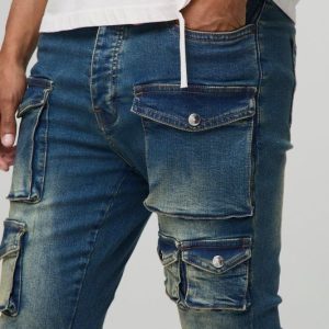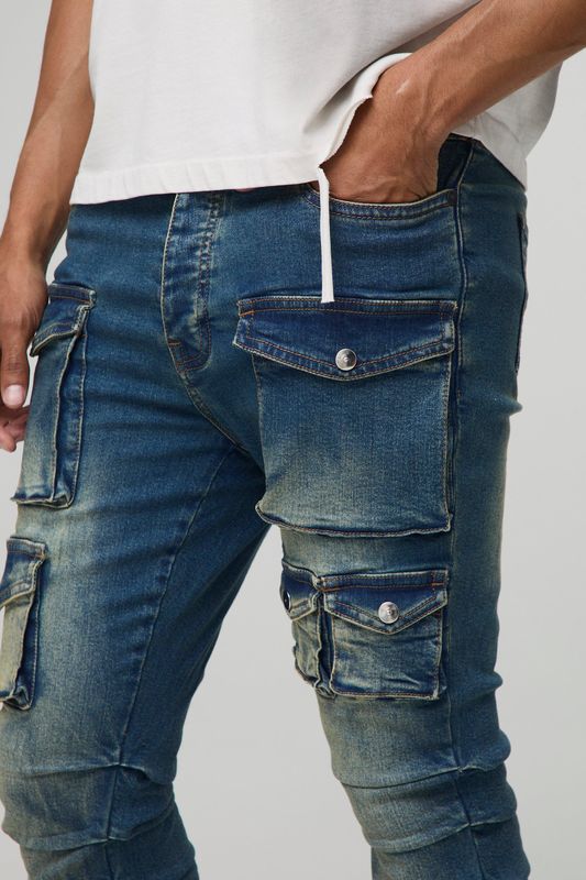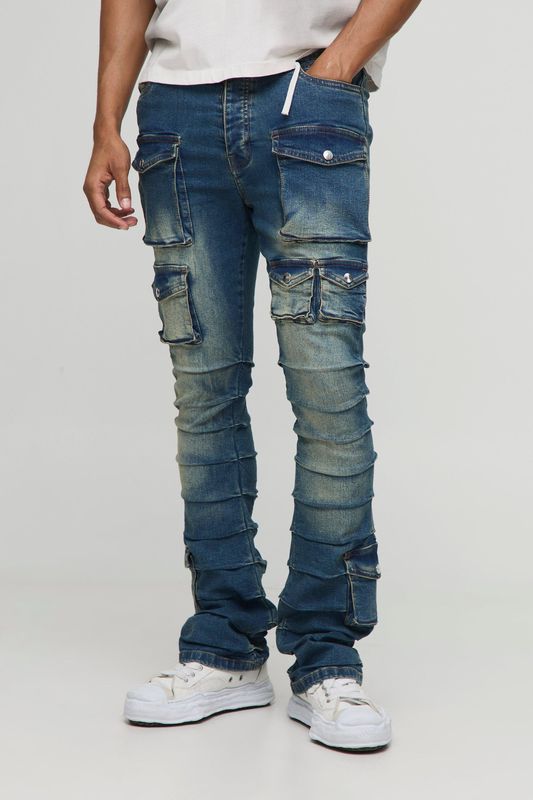 Skinny Stacked Multi Cargo Pocket Flared Jeans