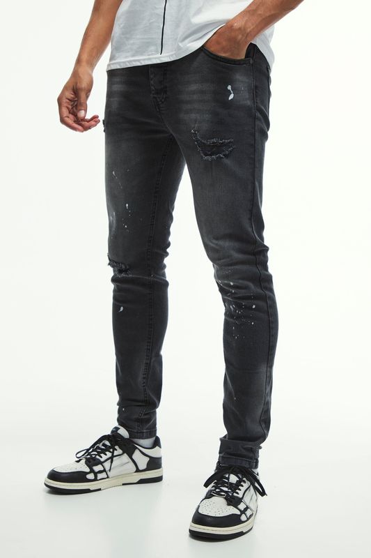 Skinny Stretch Knee Rip Paint Splatter Jeans