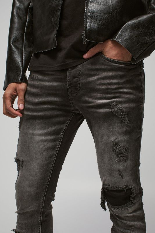 Skinny Stretch Rip & Repair Self Fabric Jeans