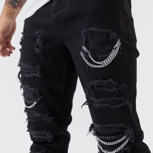 Skinny Stretch Ripped Chain Jeans