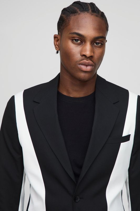 Slim Fit Contrast Panel Blazer
