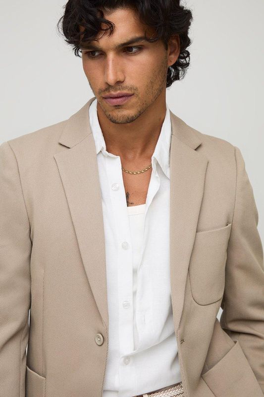 Slim Fit Single Breasted Twill Pocket Detail Blazer