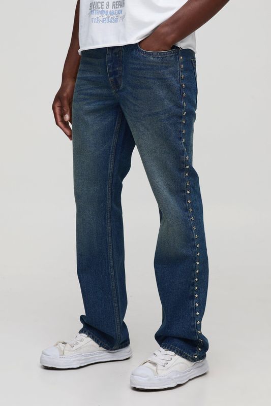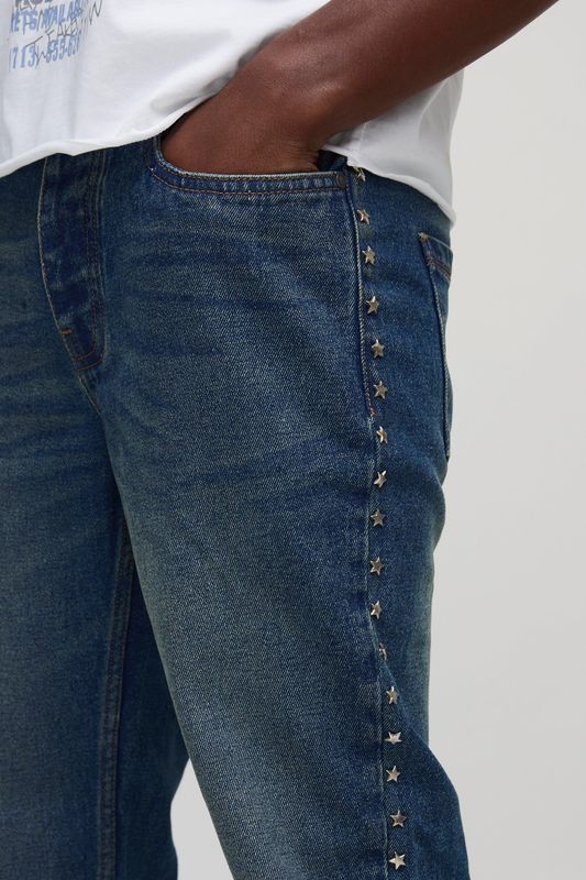 Slim Flared Antique Blue Star Studded Jeans
