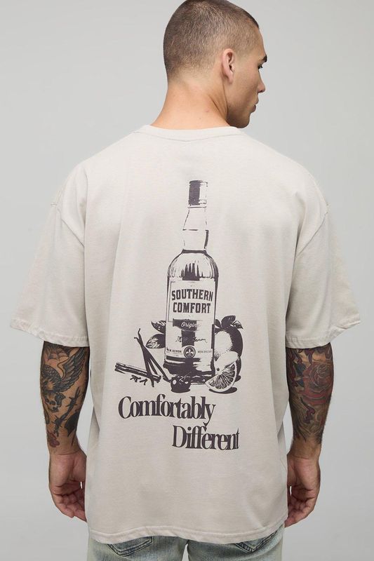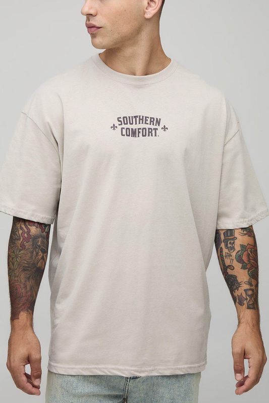 Stone Oversized Southern Comfort License Printed T-Shirt