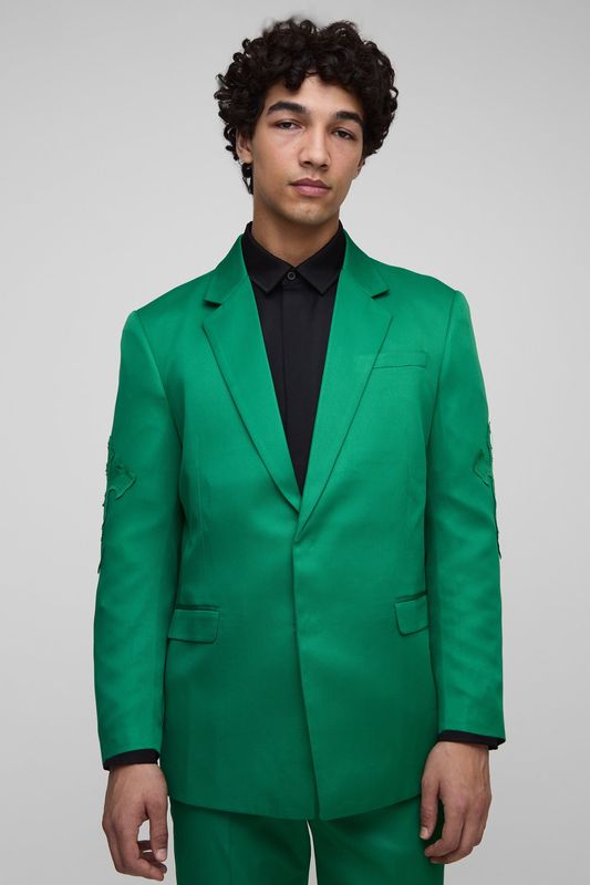 Straight Fit Cross Applique Suit Blazer