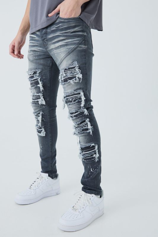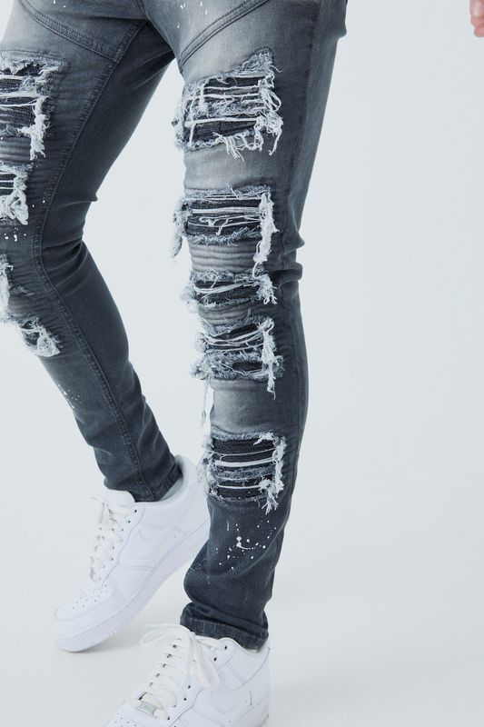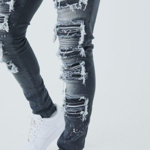 Amp up your denim game with these men’s paint splatter jeans. Featuring a splattered paint pattern these men’s paint splatter jeans come in a varied colour pallete from light blue wash material to an edgy dark grey, we’ve got a pair for every vibe. Discover everything from distressed detailing to split hems and straight leg fits, thesemen’s jeans are ready to be your next wardrobe staple. Pair your new pair of trending jeans with a hoodie or white sneakers for a fresh, understated look.