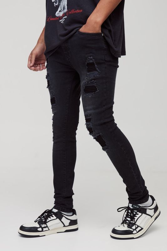 Super Skinny Stretch Biker Rip & Repair Jeans
