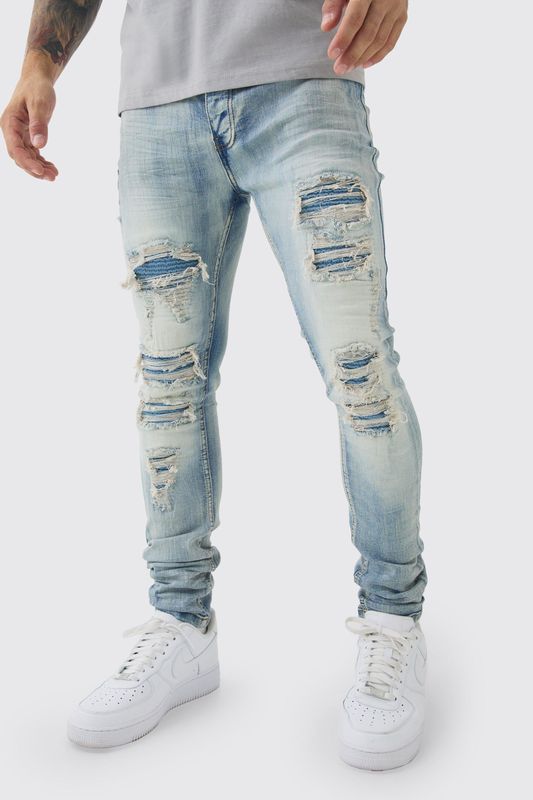 Super Skinny Stretch Washed Biker Rip & Repair Jeans