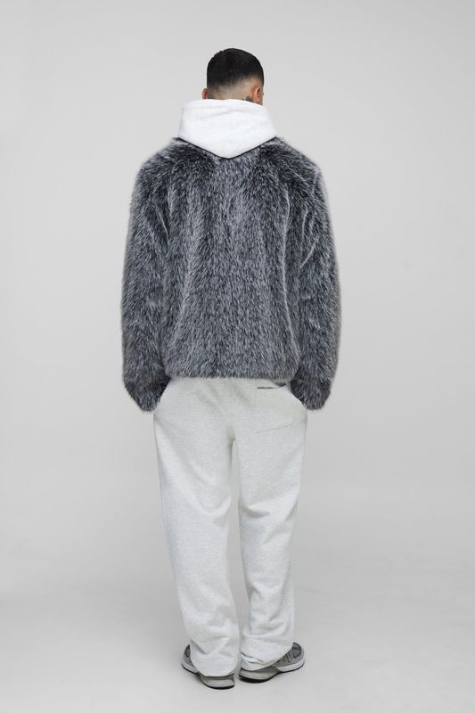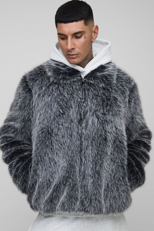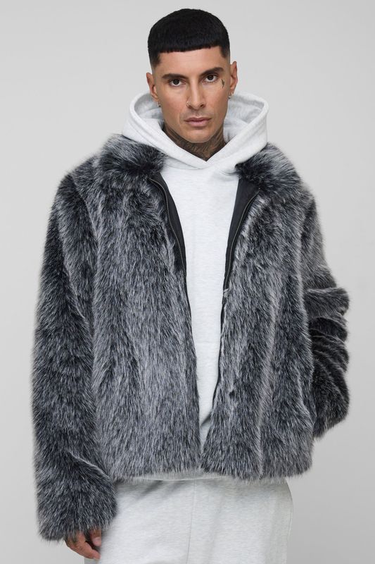Tall Boxy Oversized Fit Faux Fur Collared Jacket