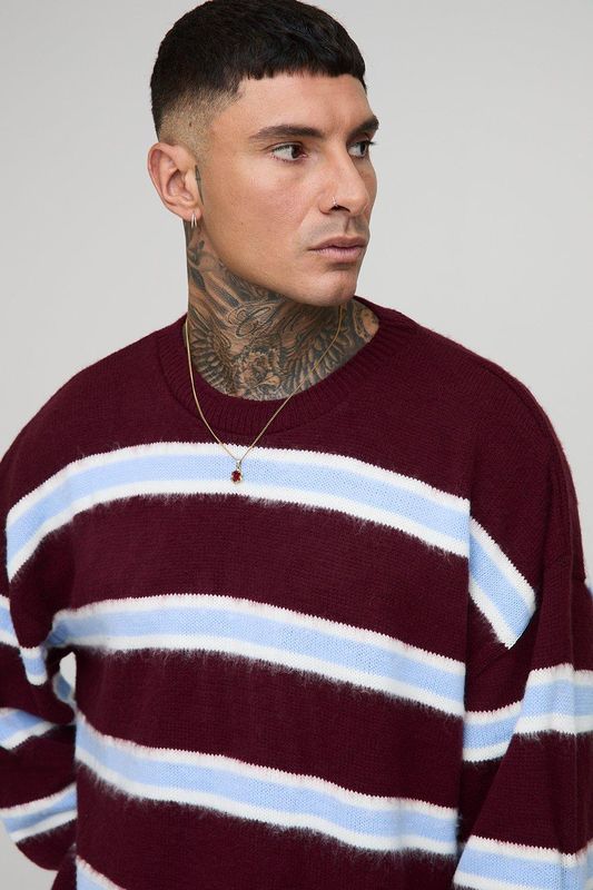 Tall Contrast Stripe Brushed Knit Oversized Jumper