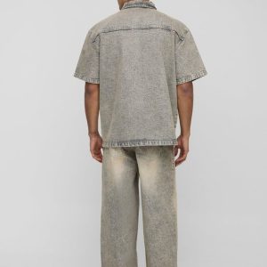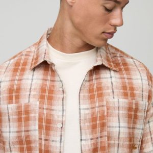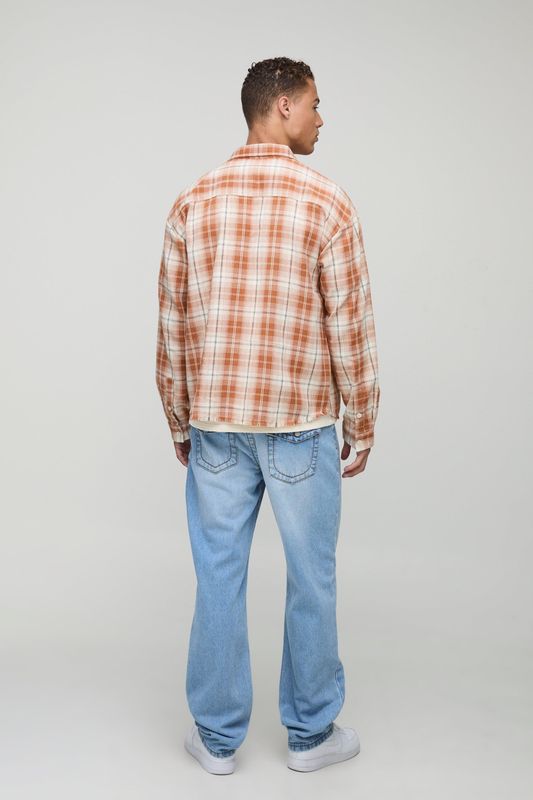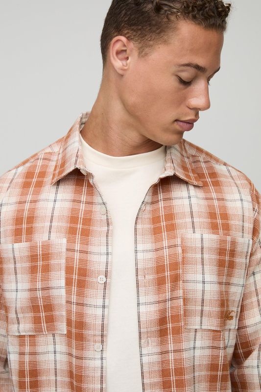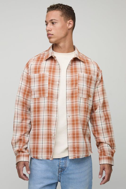 Tall Distressed Check Embroidered Oversized Shirt