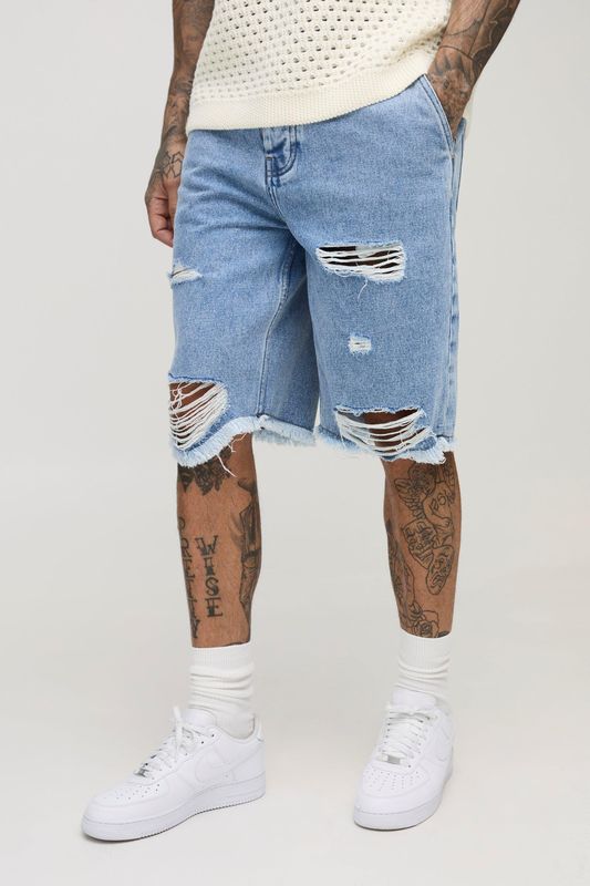 Tall Distressed Drawcord Relaxed Fit Denim Shorts