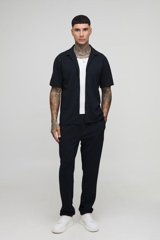 Tall Herringbone Jersey Regular Shirt and Tapered Trouser Set