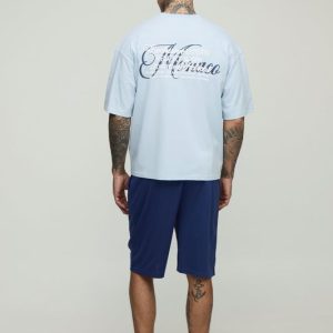 Tall Oversized Boxy Worldwide Varsity Panel Print T-Shirt & Basketball Short Set
