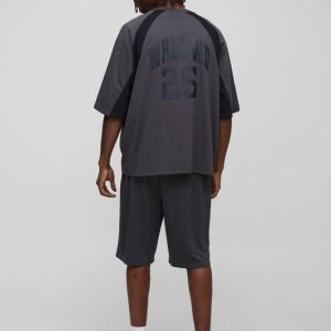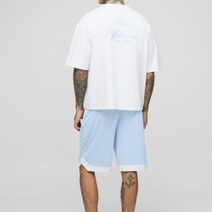 Tall Oversized Boxy Embroidered Basketball T-Shirt & Shorts Set