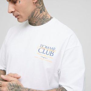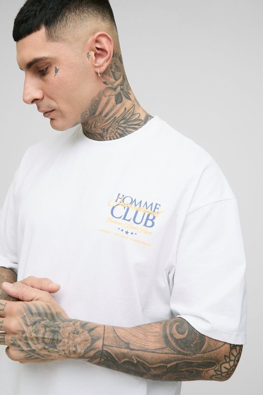 Tall Oversized Boxy Embroidered Homme Club T-Shirt & Mesh Shorts