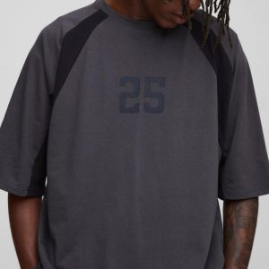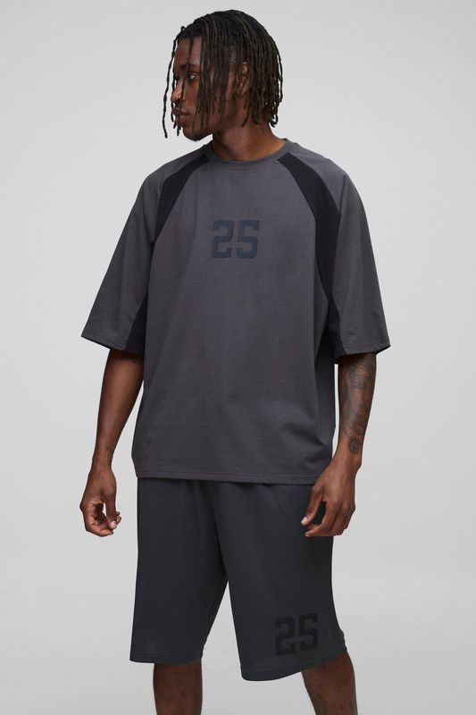 Tall Oversized Boxy Worldwide Varsity Panel Print T-Shirt & Basketball Short Set