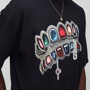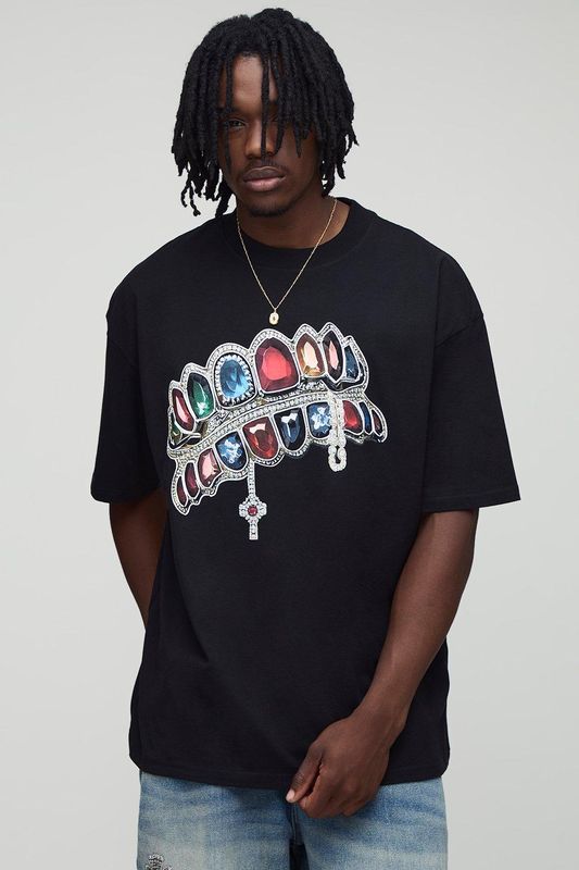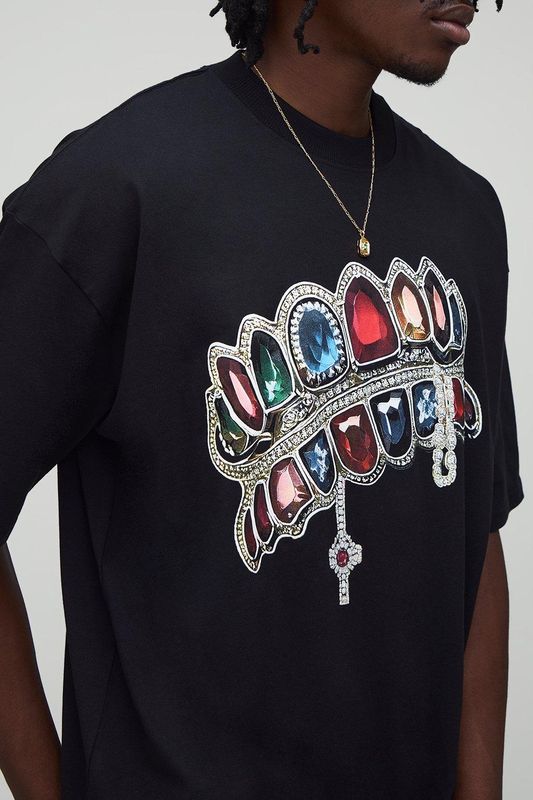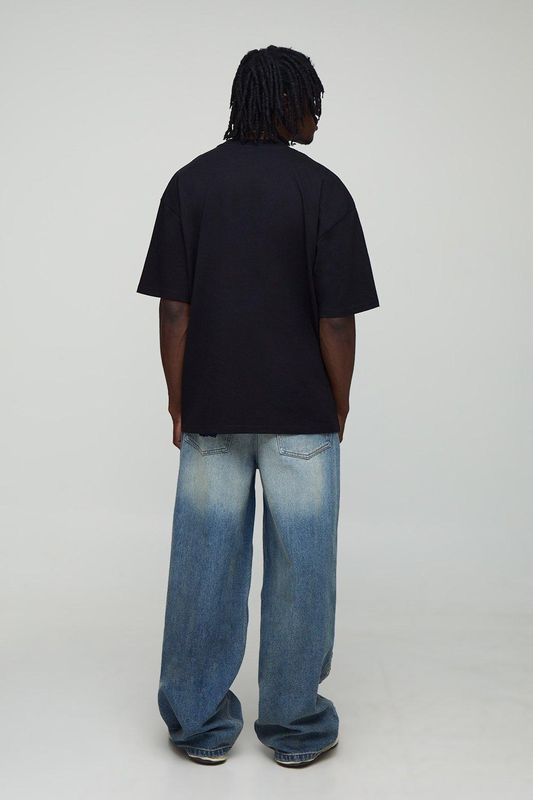 Oversized Extended Neck Over The Seam Gothic Back Print T-shirt