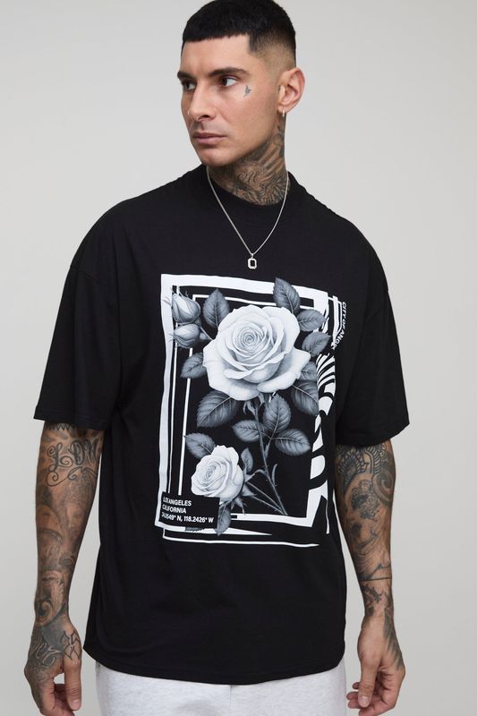 Tall Oversized Extended Neck Floral Print T-Shirt