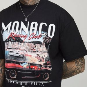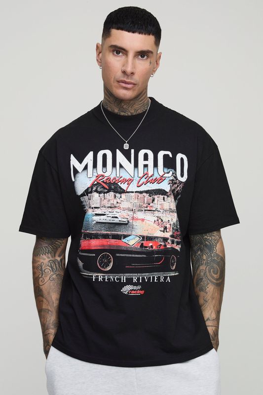 Tall Oversized Extended Neck Monaco Vintage Car Print T-Shirt