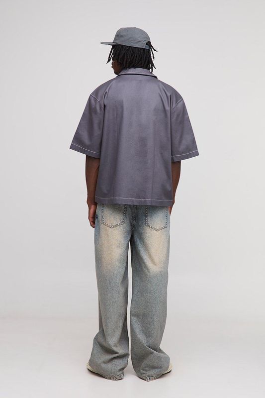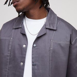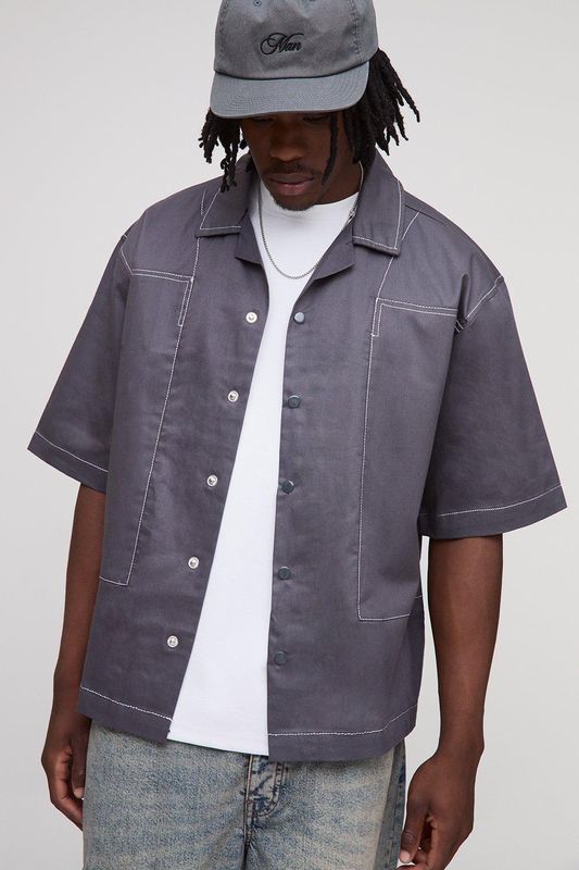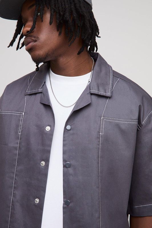 Tall Oversized Half Sleeve Carpenter Contrast Stitch Shirt