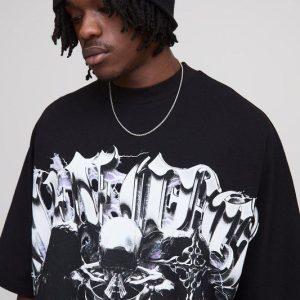 Tall Oversized Heavyweight Gothic Large Scale Print T-Shirt