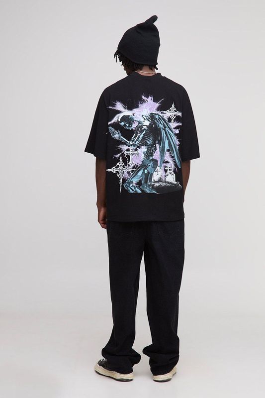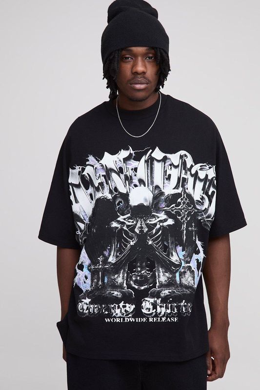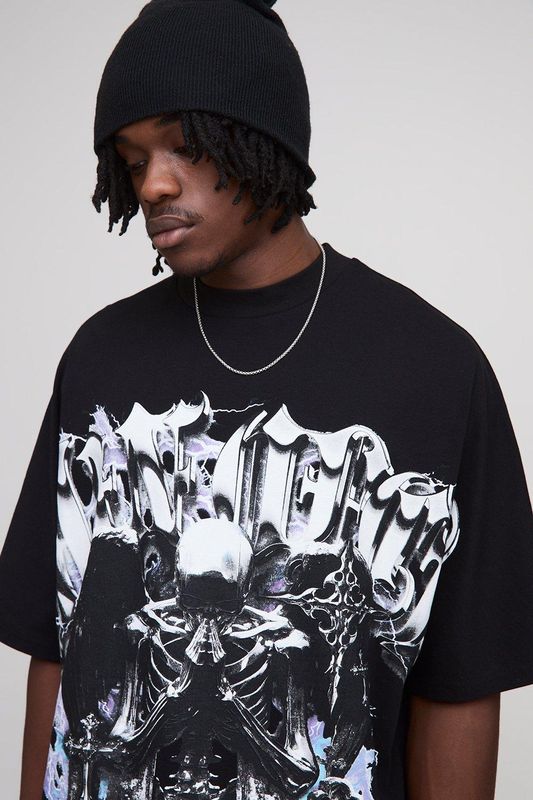 Tall Oversized Heavyweight Gothic Large Scale Print T-Shirt