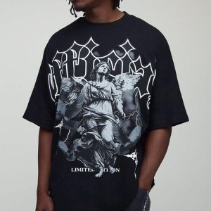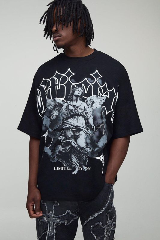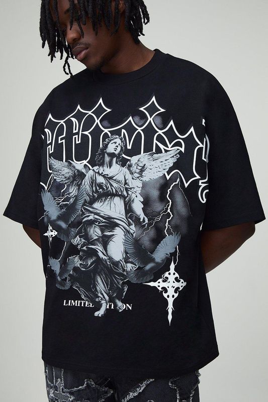 Tall Oversized Heavyweight Large Scale Print Angel T-Shirt