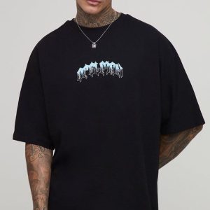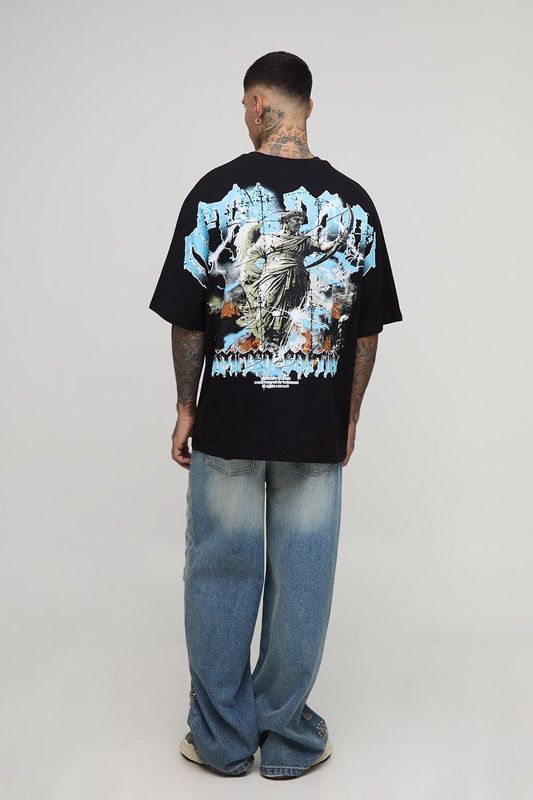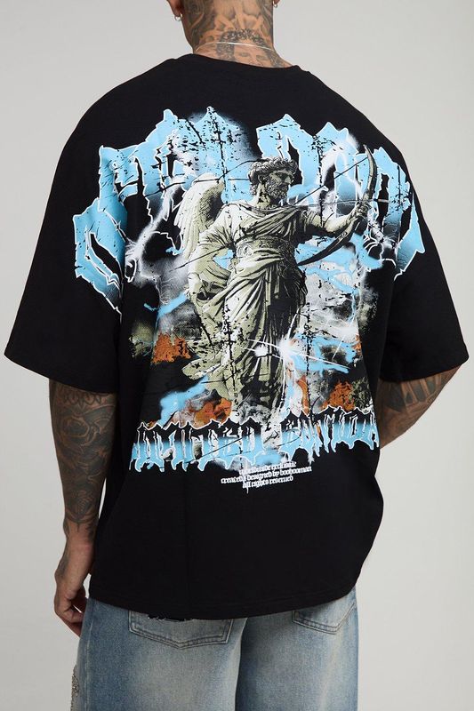 Tall Oversized Heavyweight Large Scale Print Gothic T-Shirt