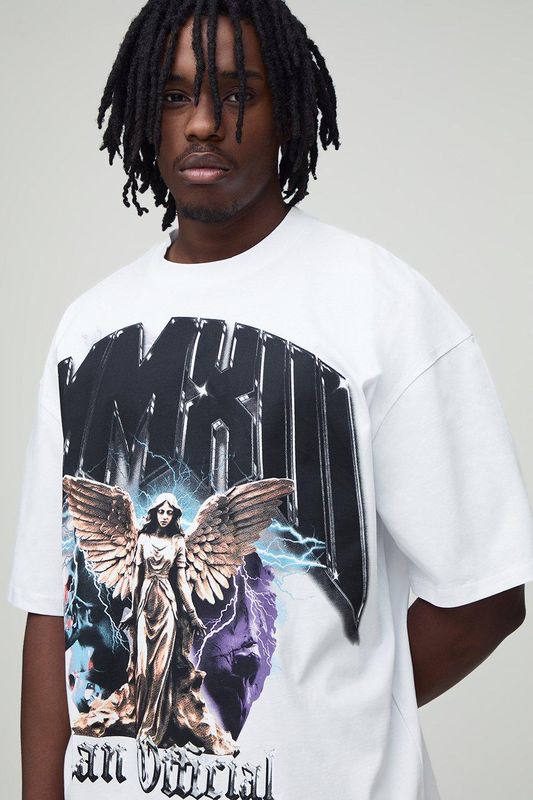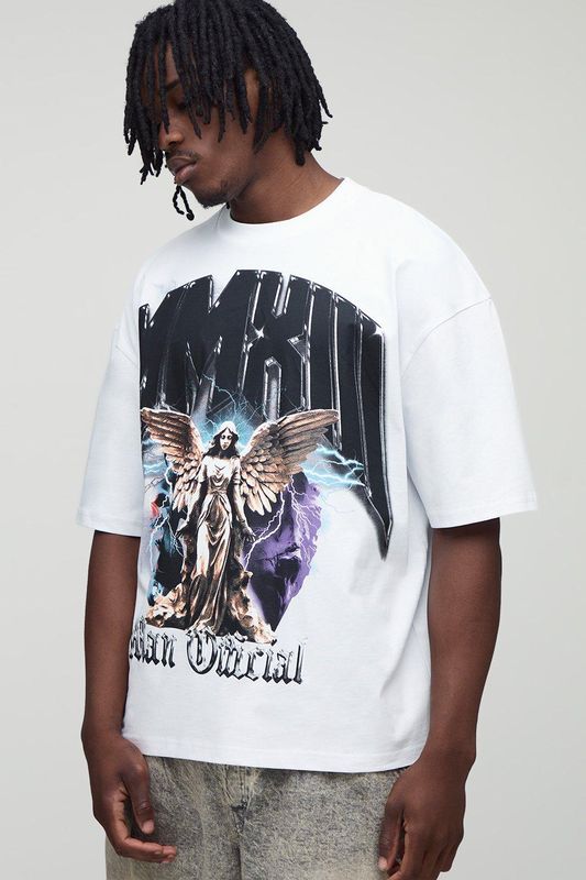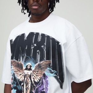Tall Oversized Heavyweight Over The Seam Angel Printed T-Shirt