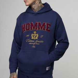 Tall Oversized Homme Varsity Applique Hooded Tracksuit