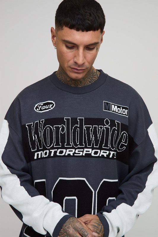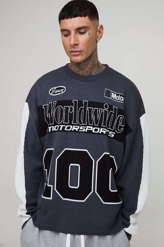 Tall Oversized Moto 100 Long Sleeve Knitted T-Shirt