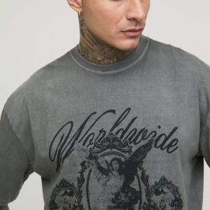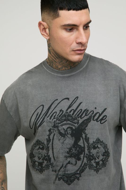 Tall Oversized Renaissance Print Washed Print T-Shirt
