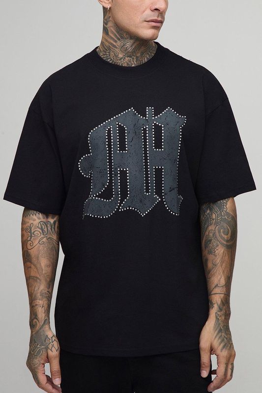 Tall Oversized Rhinestone M Printed T-Shirt