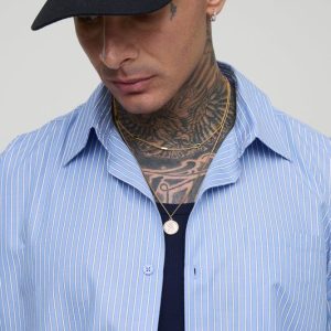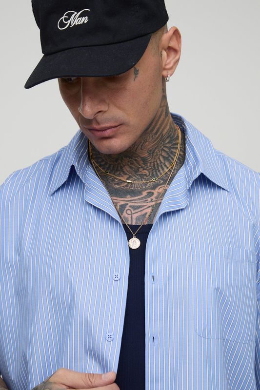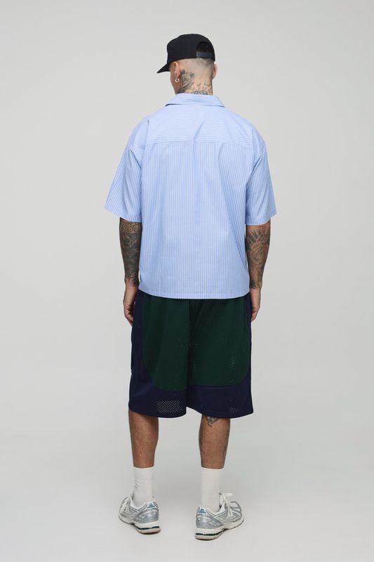 Tall Oversized Stripe Poplin Pocket Front Short Sleeve Shirt