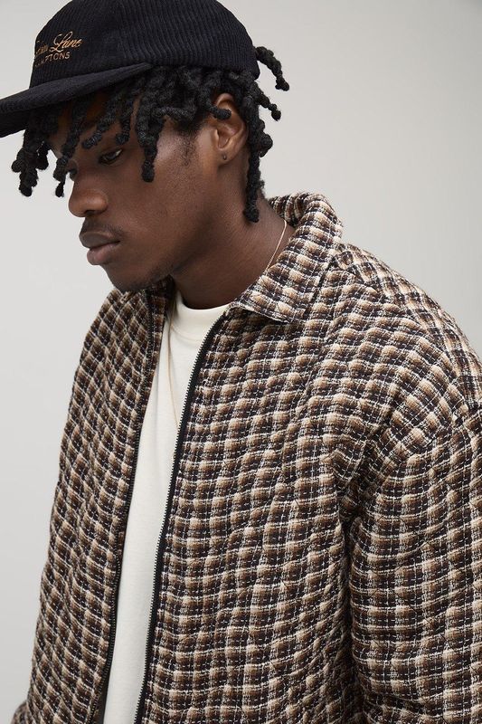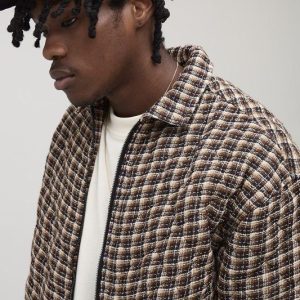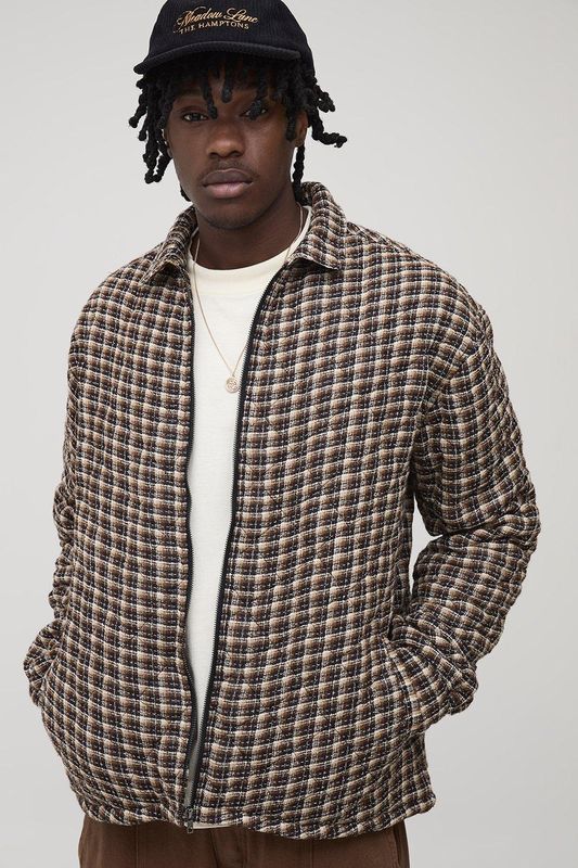 Tall Regular Fit Boucle Check Zip Up Overshirt