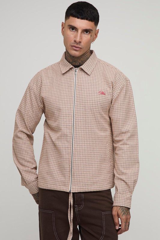 Tall Regular Fit Heritage Check Embroidered Zip Up Overshirt