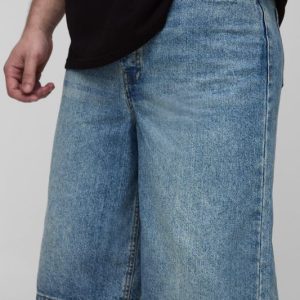 Tall Relaxed Fit Jorts with Pleat Waist Detail